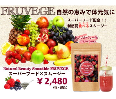 FRUVEGE Smoothie フルベジ スムージー ◆話題のスーパーフード【ホワイトチアシード】&【マキベリー】配合 ◆送料無料&シェイカープレゼント中♪